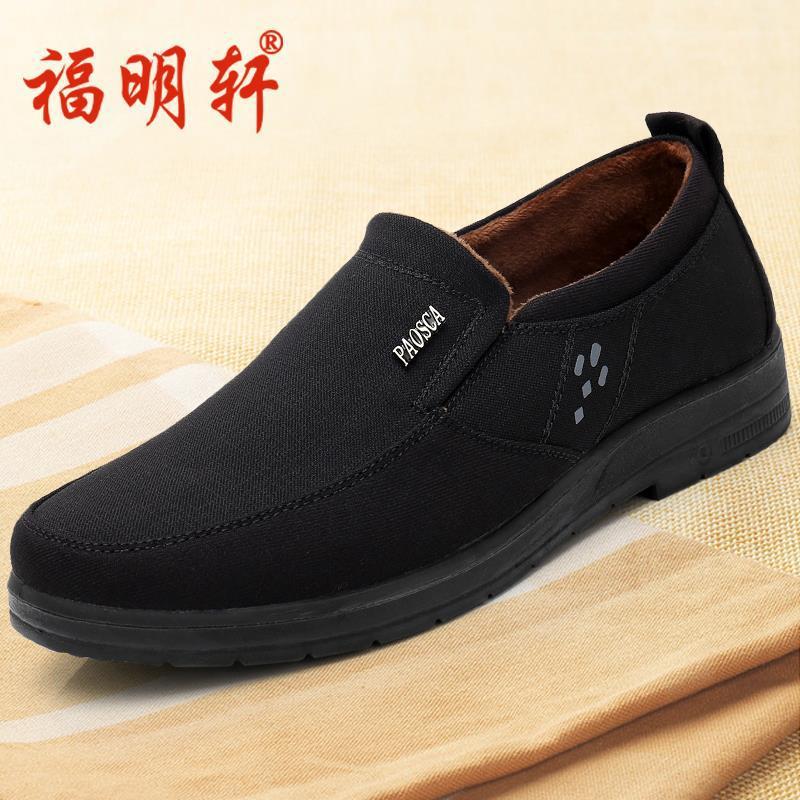 古い北京布靴メンズプラスベルベット綿滑り止めソフトソール中高年カジュアルお父さん靴秋と冬の快適な高齢者の靴