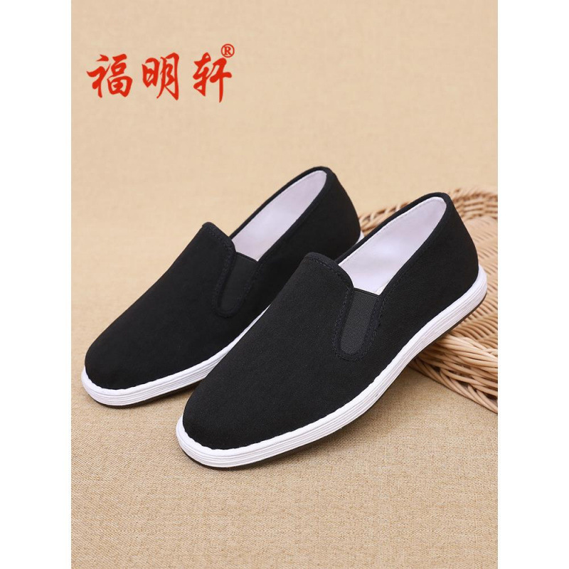 古い北京布靴、男性と高齢者の靴、通気性のあるビジネスカジュアルの父親の靴、中高年の父親の靴、スリッポンの模造革靴