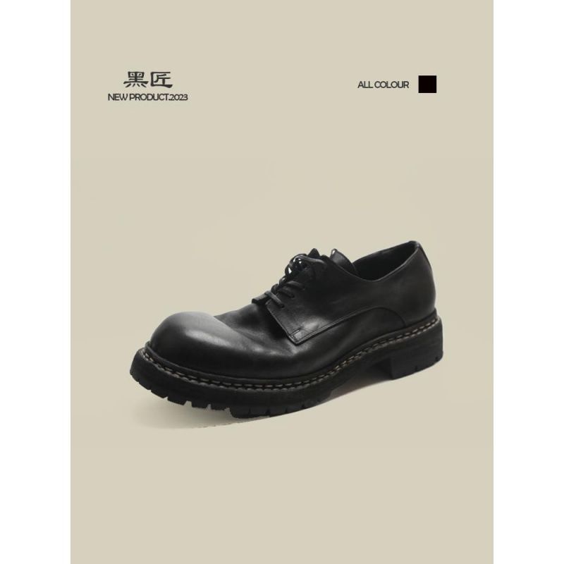 手作りヘアスタイリストシューズスクエアトゥレザーシューズメンズレースアップ高耐摩耗性滑り止めビジネスフォーマル通気性第一層牛革靴