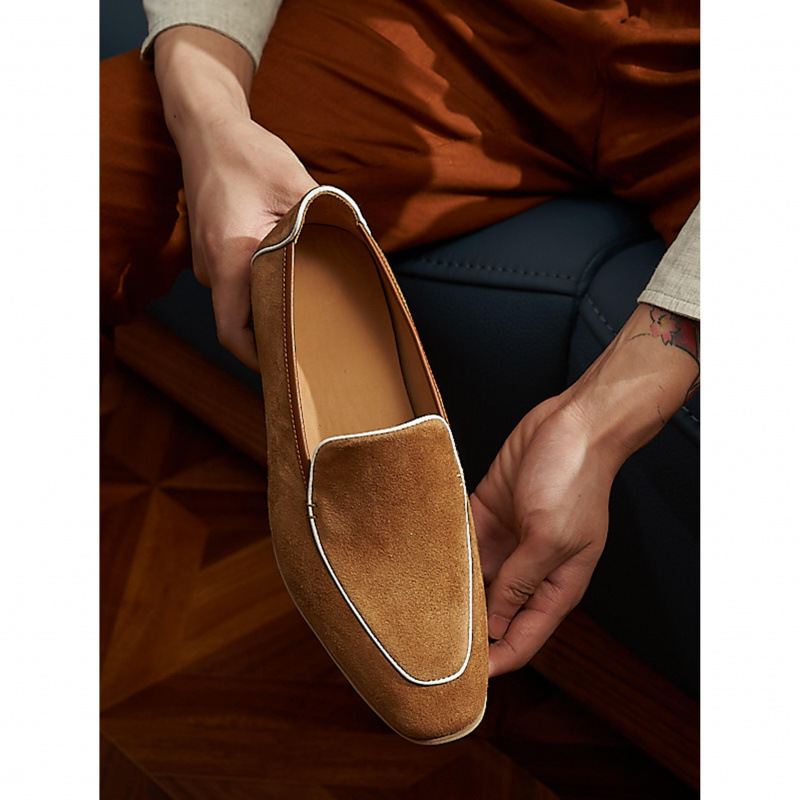 ハンドメイド本革メンズビジネス革靴、ソフトレザートレンド英国スクエアトゥローファー、ハンドメイドシューズ、スリッポンシューズ