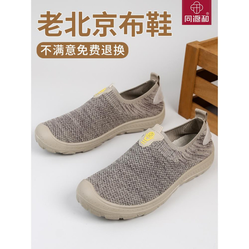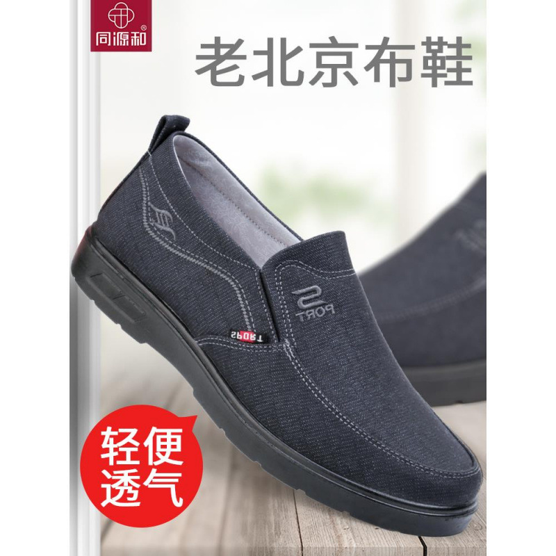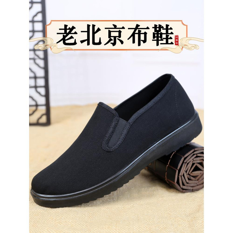 手作りの古い北京布靴メンズ新しい春スリッポン通気性滑り止めソフトソール中高年閏月靴お父さん