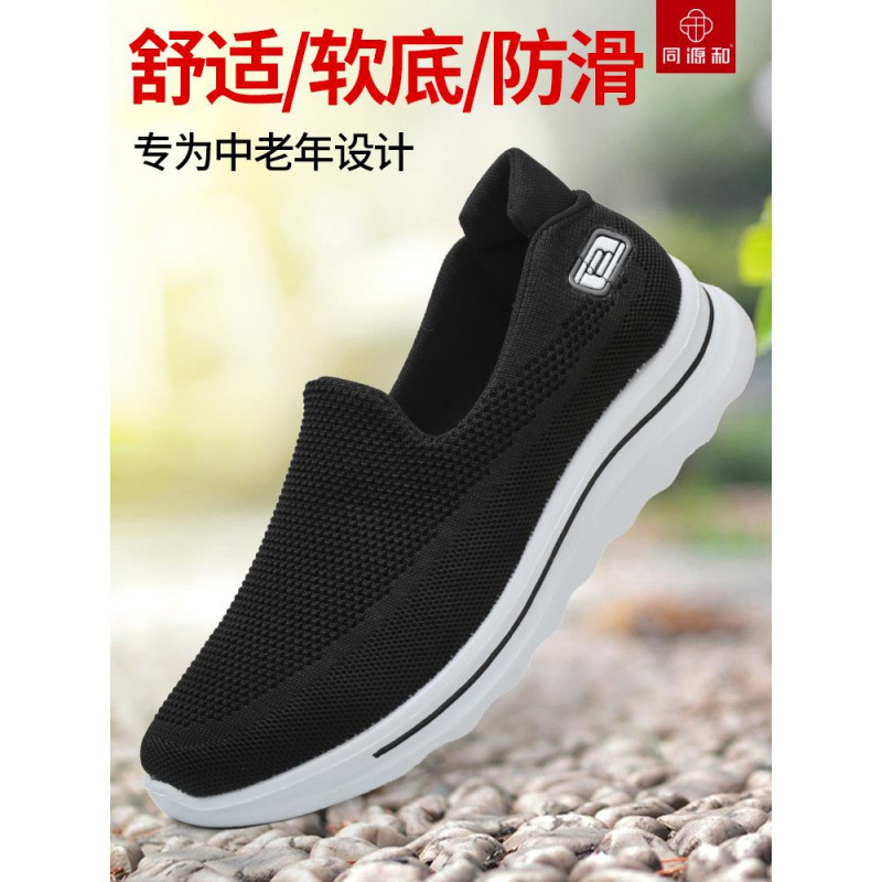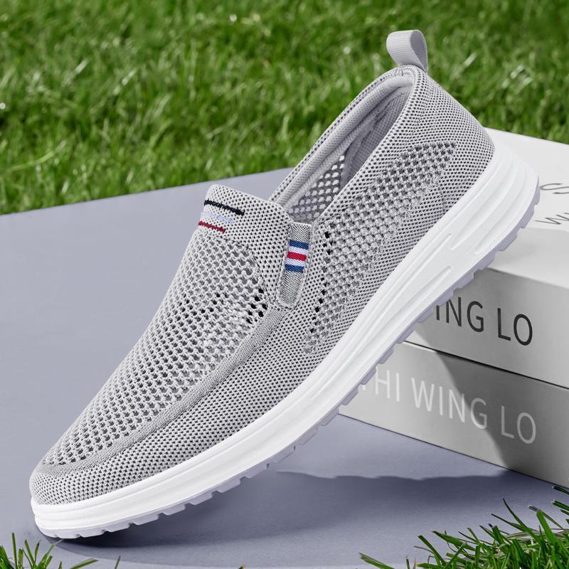 古い北京布靴メンズ新しいメッシュ通気性メッシュシューズ中高年薄型お父さん靴カジュアルスリッポン紳士靴