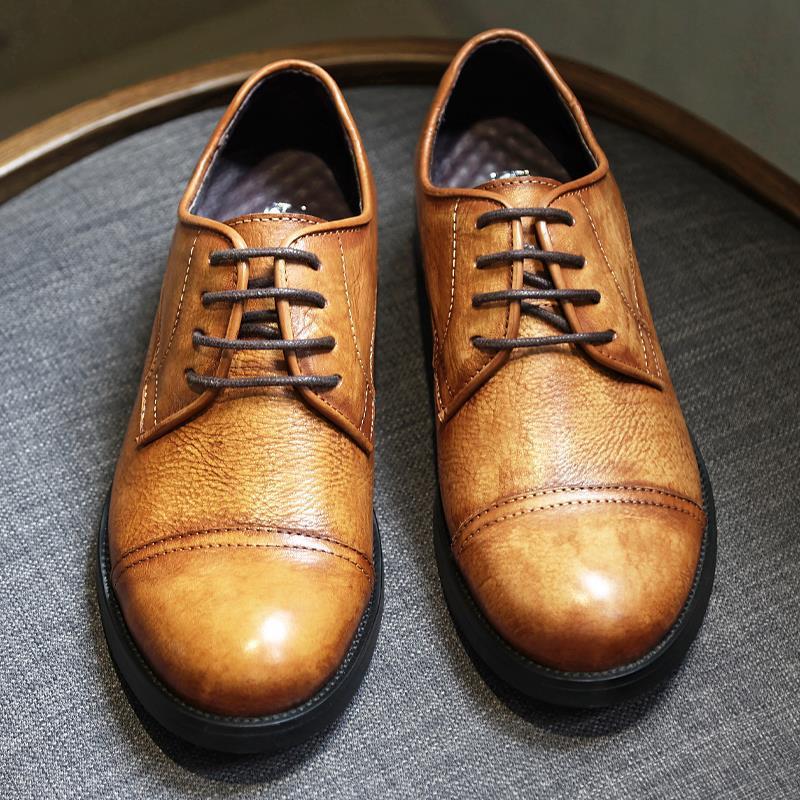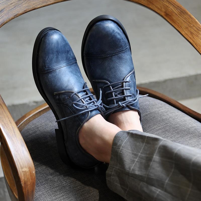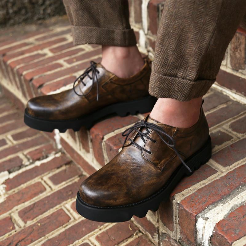 紳士靴オリジナルヨーロッパとアメリカのレトロ紳士靴手作りの古いトレンディな靴ビッグトゥシューズメンズ厚底レザーカジュアルシューズ作業靴