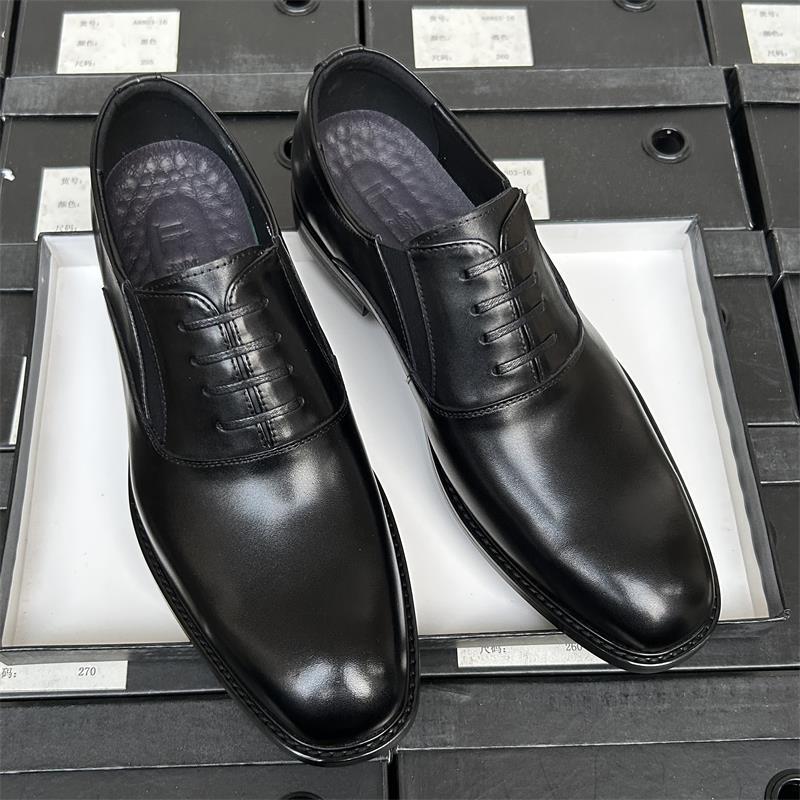 新しいヨーロッパスタイルのメンズヨーロッパスタイルの尖った革靴ビジネスフォーマルウェア身長を伸ばす結婚式の靴若者ヘアスタイリスト紳士靴
