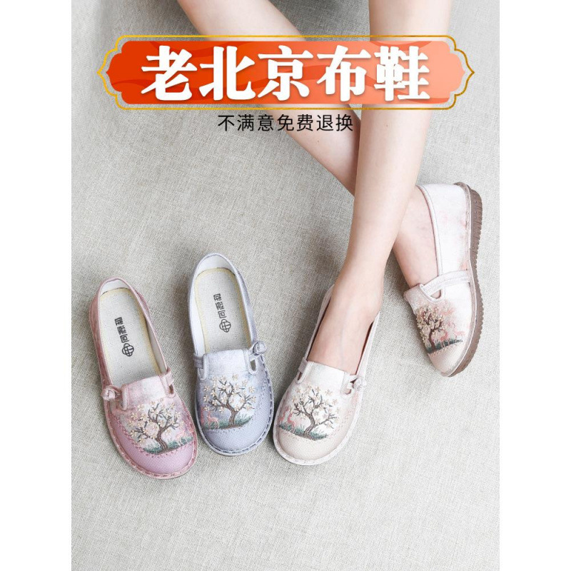 女性用の手作りの古い北京布靴、春夏の新しいスタイル、刺繍入りのスリッポン、中高年向けの快適で疲れにくい母親の閏月靴
