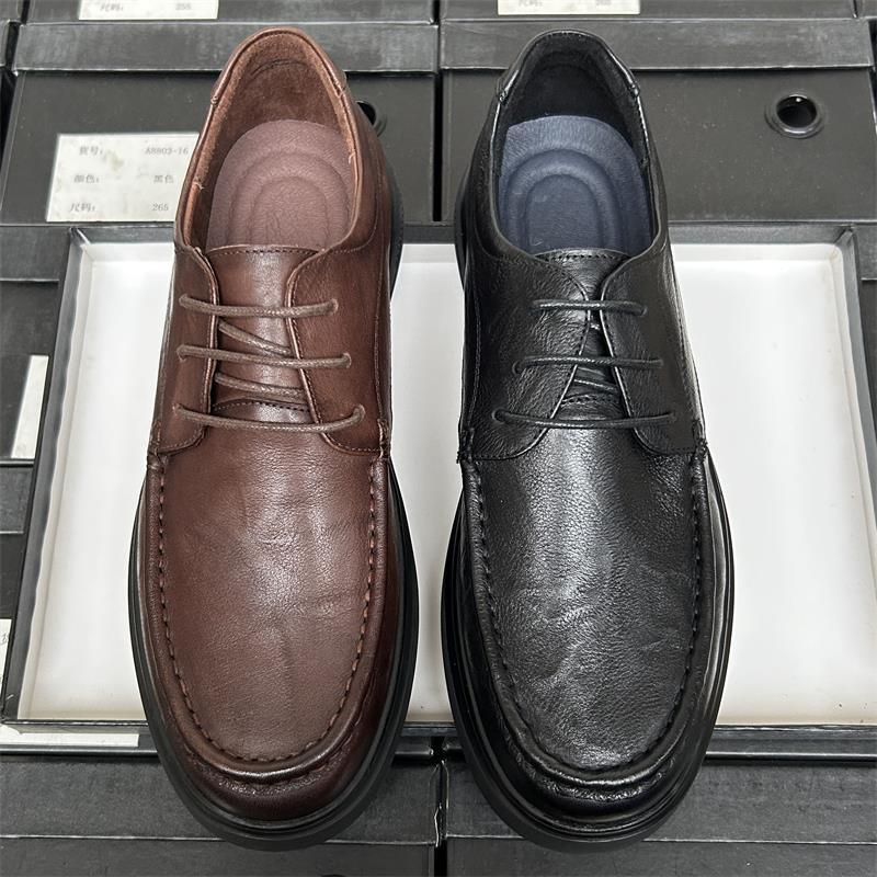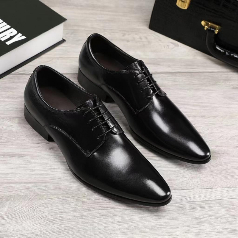若者向けの新しいスタイルの尖った革靴、黒の高さを高める韓国風トレンディなレースアップカジュアルビジネスラバーソフトソールベストマンシューズ