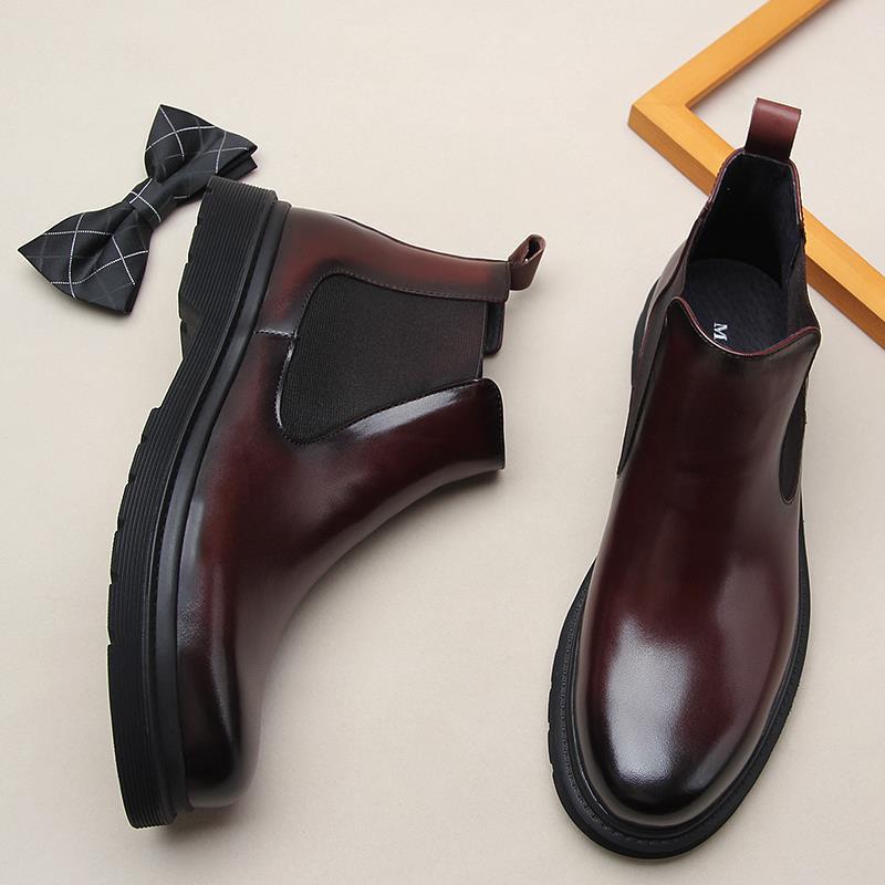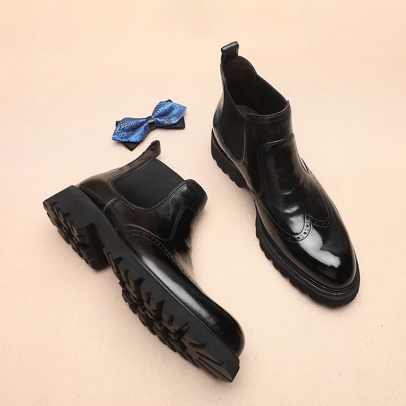 英国レトロカジュアルファッション多用途黒厚底ブローグ彫刻秋冬韓国風本革チェルシーブーツ男性用