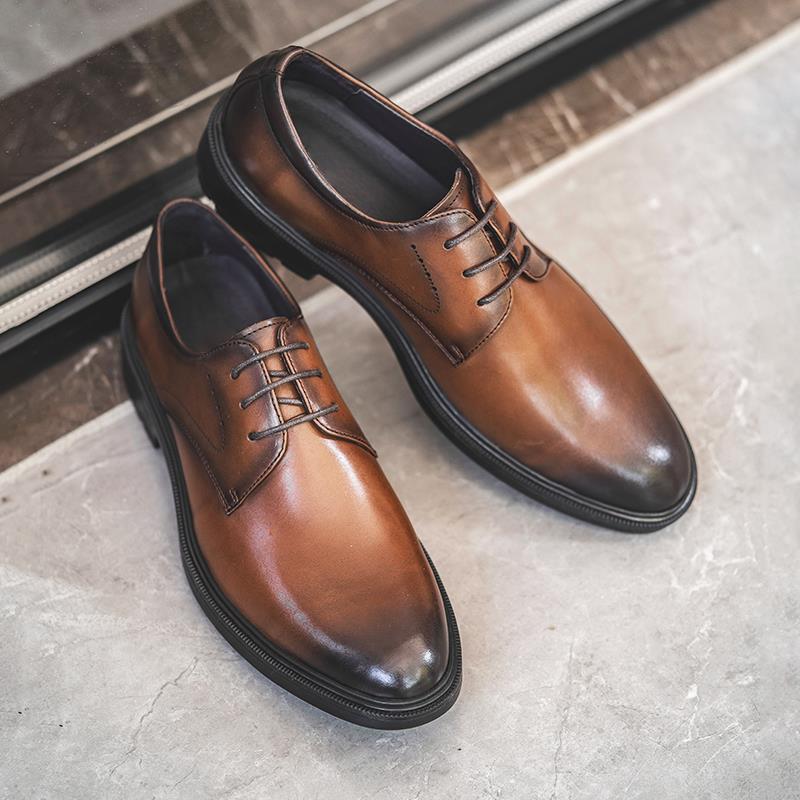 つま先層牛革ビジネスフォーマルメンズ革靴本革英国新郎結婚式ベストマンゴムソフトソール作業靴