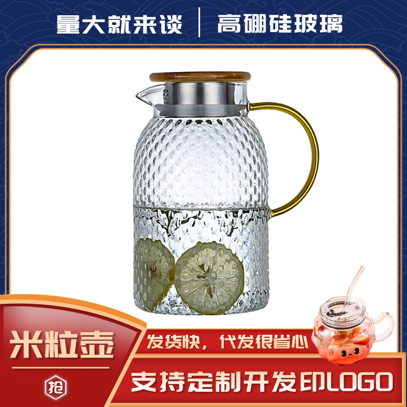 高ホウ素シリコン耐高温ガラス米粒ポット家庭用冷水ポットステンレスカバー大容量ハンマーポットセット