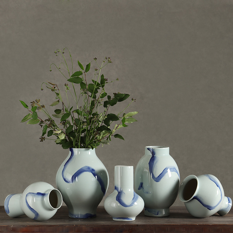 新中国式陶磁器花瓶青花水墨生け花磁器缶禅意客間書斎玄関家庭装飾品置物