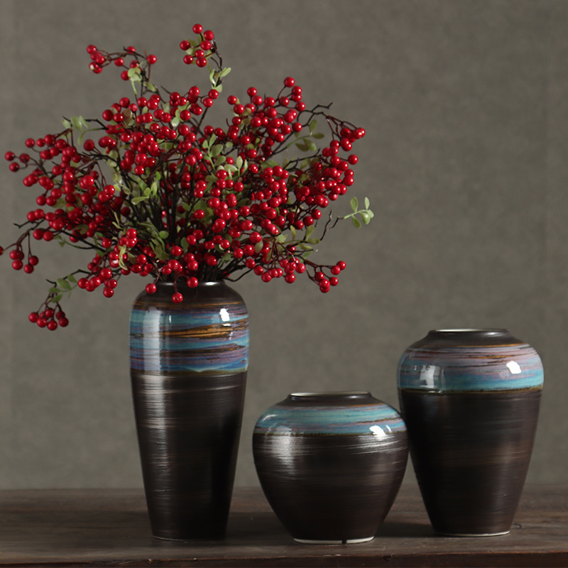 寂しいレトロ創意水培陶磁器色釉薬挿し花瓶陶缶田園デスクトップ置物リビングルーム家庭装飾品