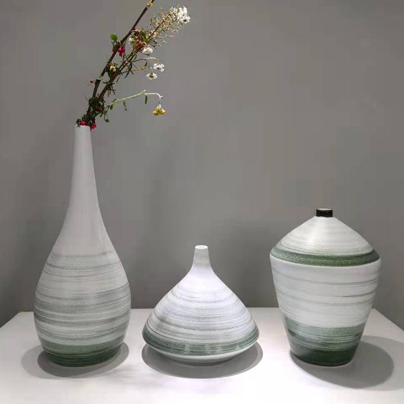 北欧の軽い豪華な小口の花瓶は墨の緑の陶磁器の置物のテーブルの見本の部屋のビルの売り場の花器の柔らかい装飾品を引き出します。