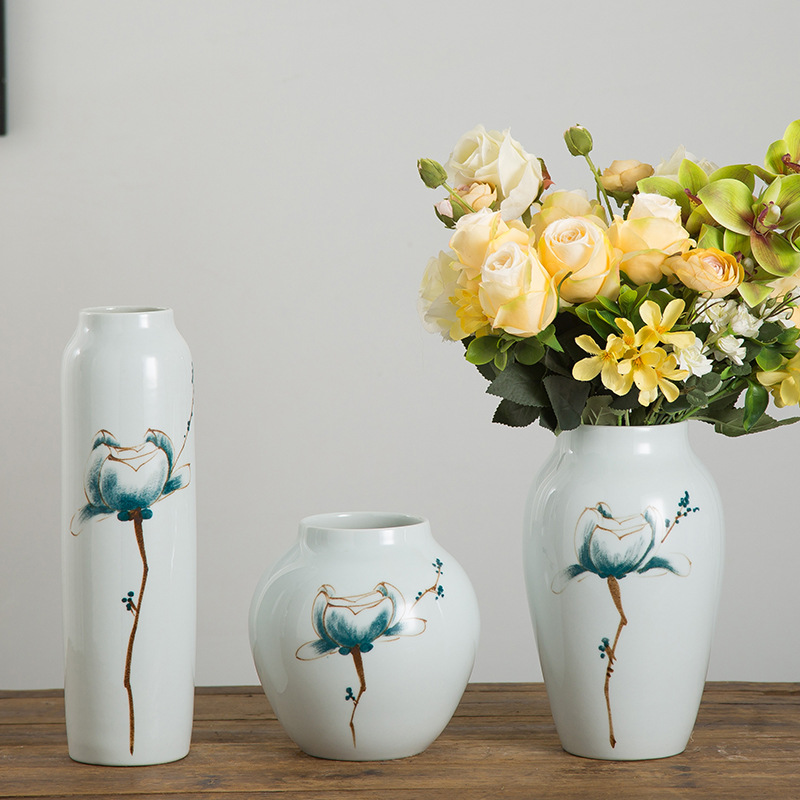 景徳鎮新中国式花瓶手描き創意陶磁器レトロ水培生け花玄関客間家庭装飾置物