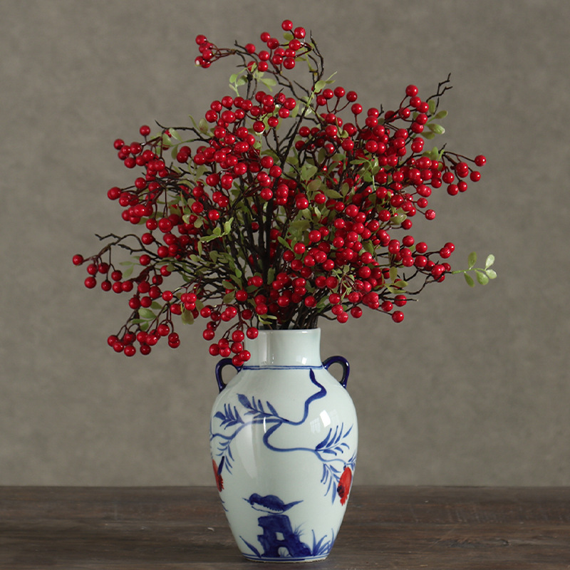 新中国風古典双耳青花磁器花瓶置物客間玄関テレビ戸棚家庭花器装飾品