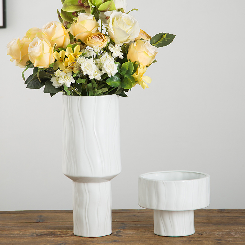 北欧陶磁器高足花瓶白い书斎リビング生け花食卓装饰花器デザイナーモデルハウスソフト
