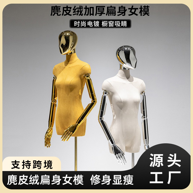 メッキ革モデル婦人服店ショーウインドー道具半身韓国版平身平胸モデル展示棚黒