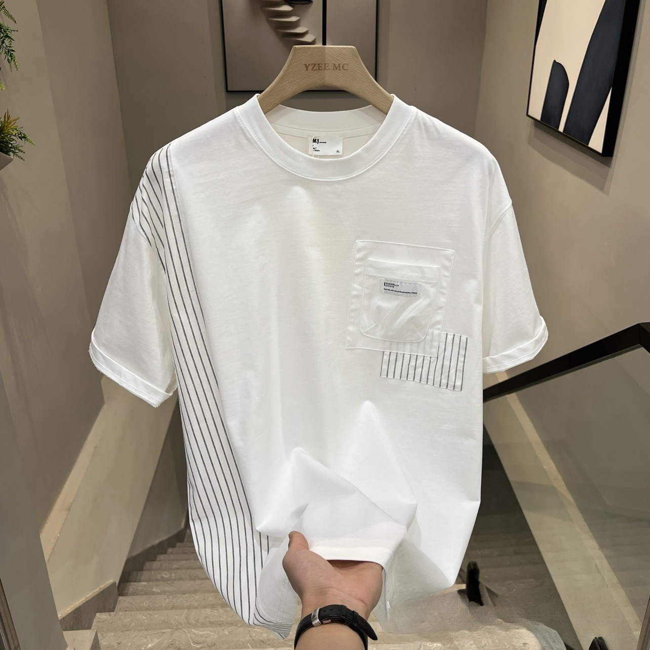 2024 夏の新スタイルシンプルなステッチ高品質ラウンドネック半袖 Tシャツメンズカジュアル多用途若者ハンサム