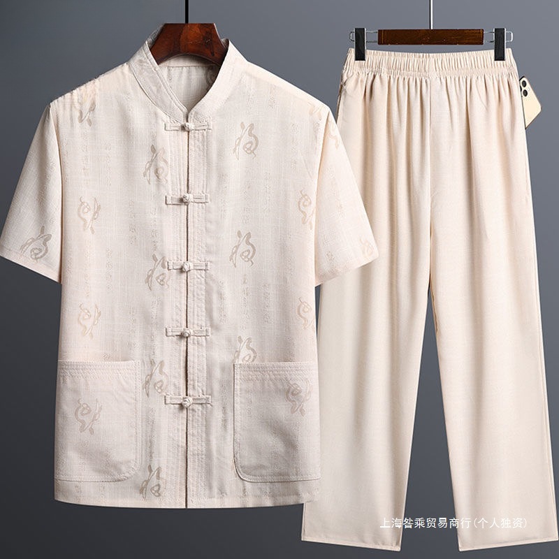 tuo2 中国風の男性用唐スーツ、中高年のお父さんの夏スーツ、高齢者用シャツ、おじいちゃんのスーツ一式