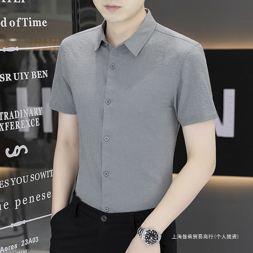 メンズ半袖アイスシルクシャツ夏無地ノンアイロンシワ防止インチシャツビジネスカジュアルピュアバージョン半袖薄手スタイル