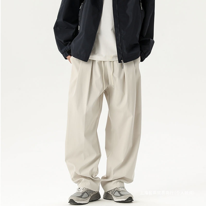 ゆったりストレートパンツメンズ夏和風ワイドレッグパンツトレンディシンプル無地万能カジュアルパンツメンズ
