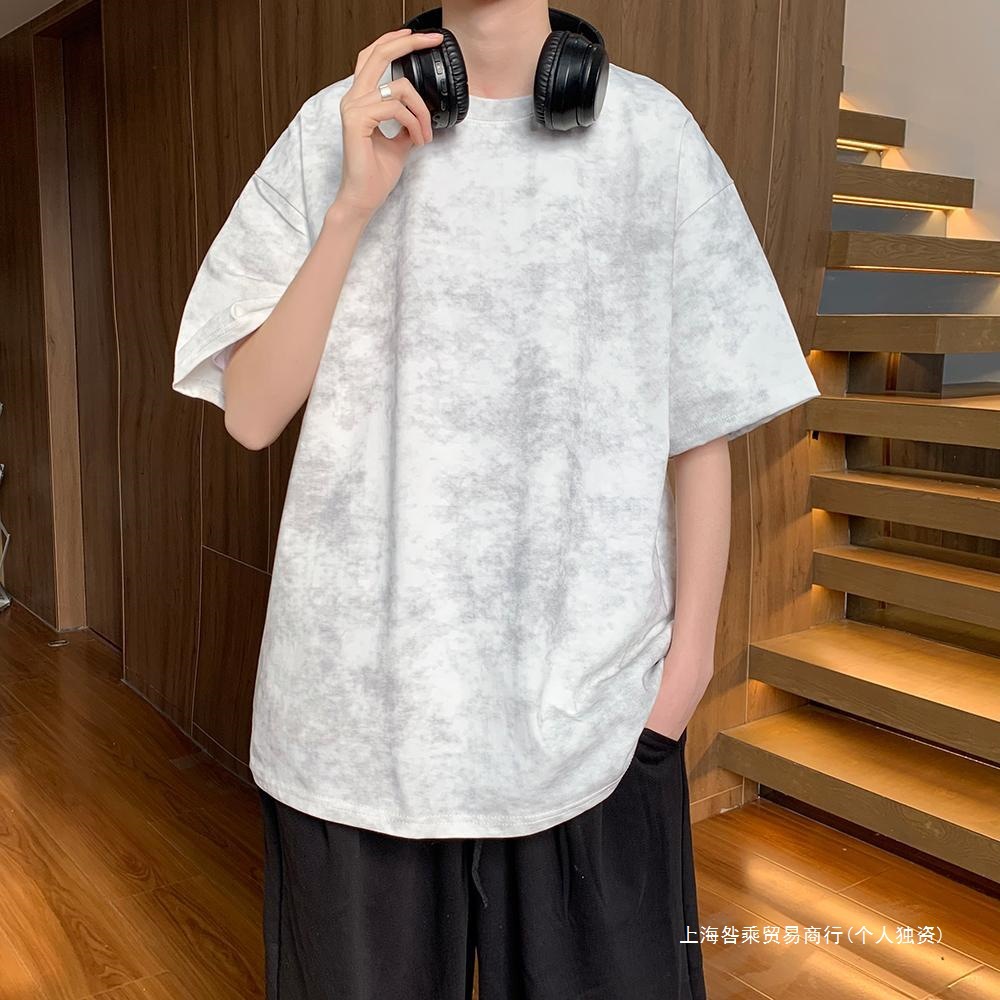 半袖Tシャツメンズ夏のトレンドブランド2025新しいダーティタイダイトレンドティーンエイジャールーズカジュアルボディ