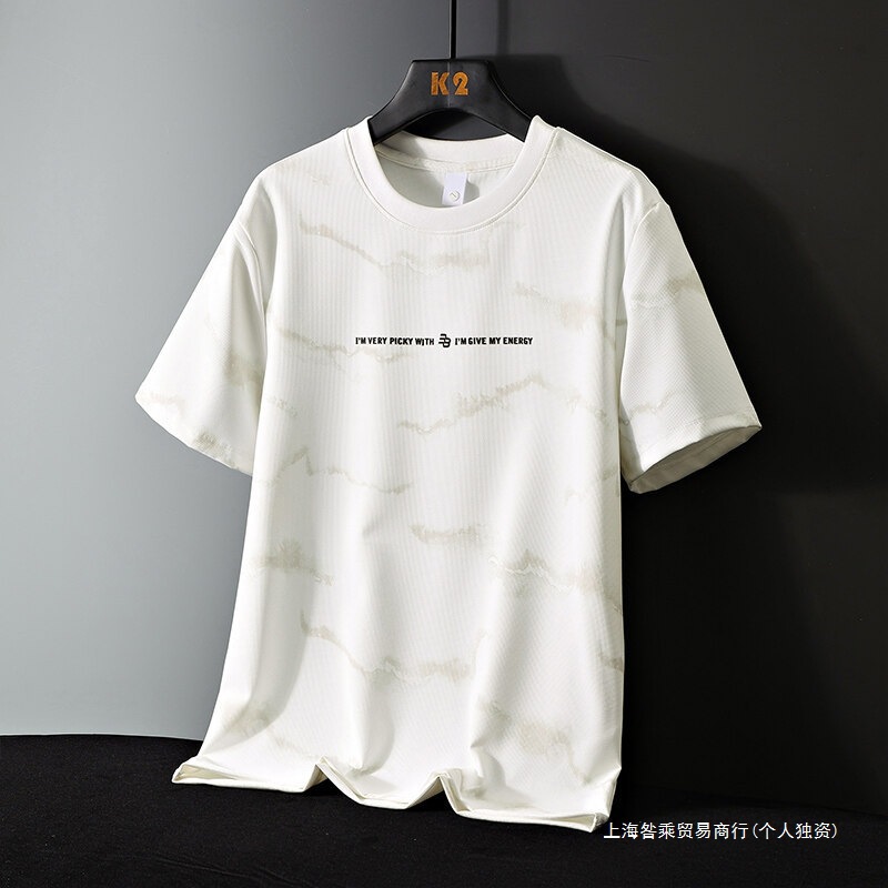 2025 夏メンズ半袖 Tシャツスリムアイスシルク速乾全身吊り染めファッション多用途 T グレースメンズベース
