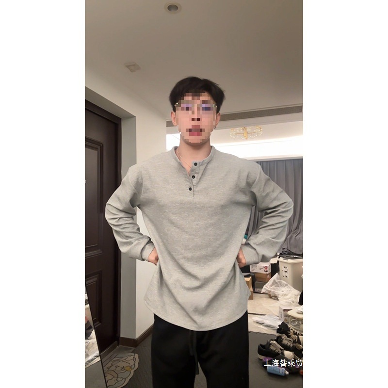 Binziと同じスタイルのヘンリーカラー長袖Tシャツメンズ春秋アメリカンレトロヘビーウェイトスウェットシャツポロカラーアンダーレイヤー