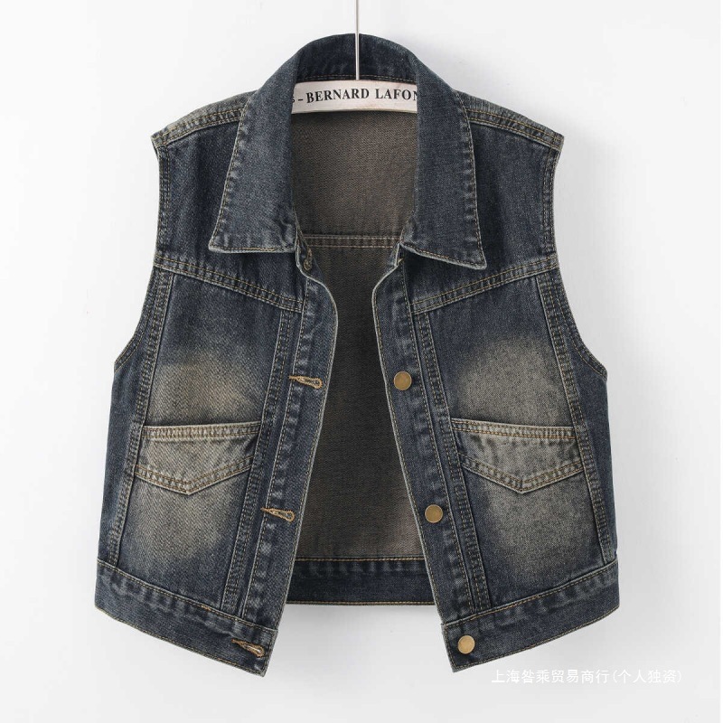 Fangfangbifan ビッグポケットデニムベストレディースショート 2024 春と秋の新韓国ファッションスリムベスト