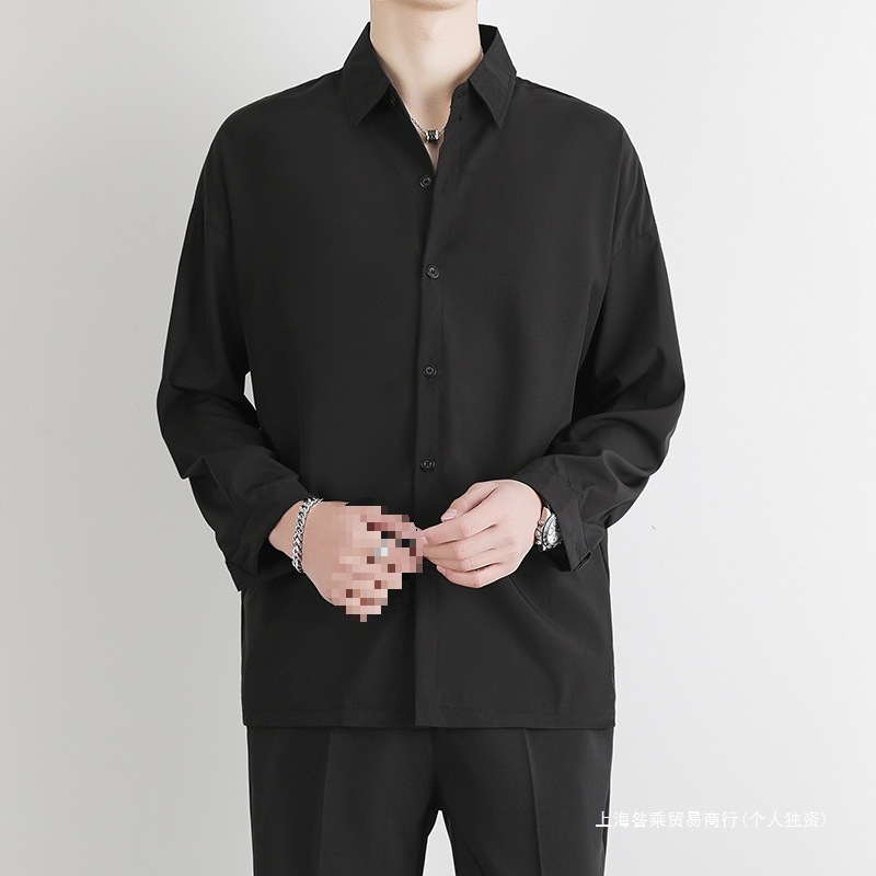 春と秋のメンズ長袖シャツ、レザーハンサムユース、シンプルなドレープカジュアルシャツ、軽くて大人なスタイル、イントレンド