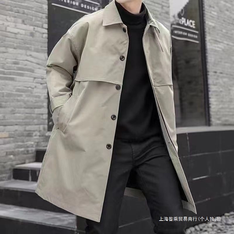 ウインドブレーカー 新品 メンズ ミドル丈 春秋コート 韓国風 トレンド ブランド ゆったり カジュアル コート ブラック