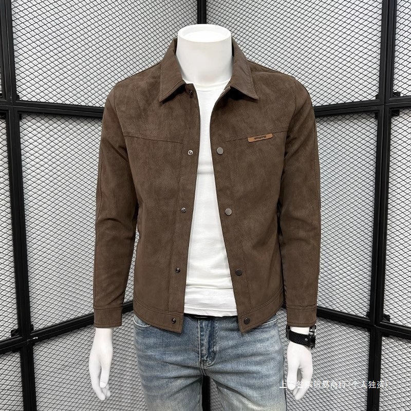 2025 新作春秋ジャケットメンズハンサムトレンディブランドラペルスエード秋トップメンズトレンド