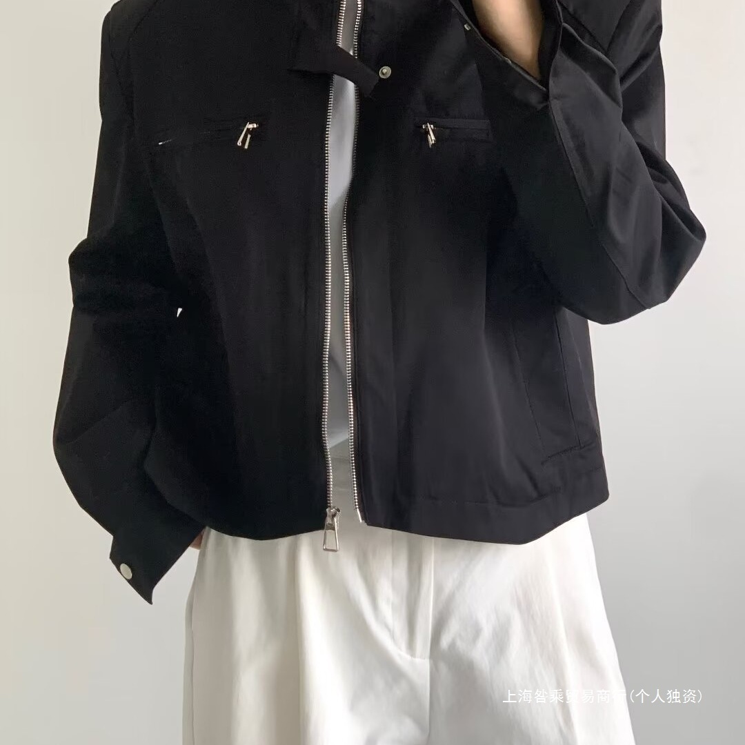 アメリカンレトロラペル肩パッドジャケットクリーンフィットデザインカーキショートジャケットメンズカジュアル