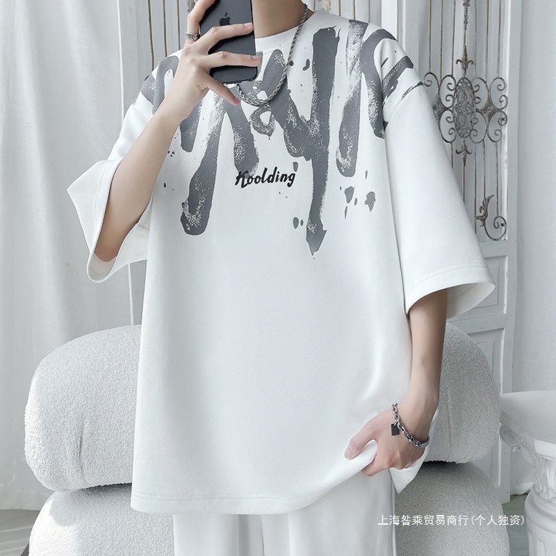 ファットカジュアル【スプラッシュインクグラフィティTシャツ】夏用ヘビーウェイトアメリカンビッグプリントカジュアル半袖メンズ万能ハーフ