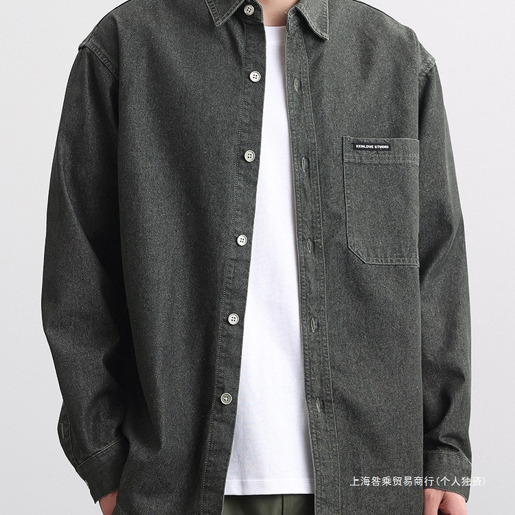 越境感の純色のシンプルな長袖のシャツの男性の2024春と秋の新型のコートの男性のカジュアルな百合の上着