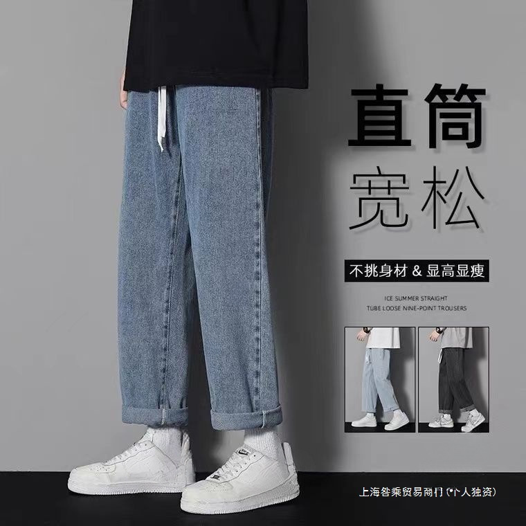 クロスボーダー春秋ジーンズ男性ゆるいストレートパンツファッション