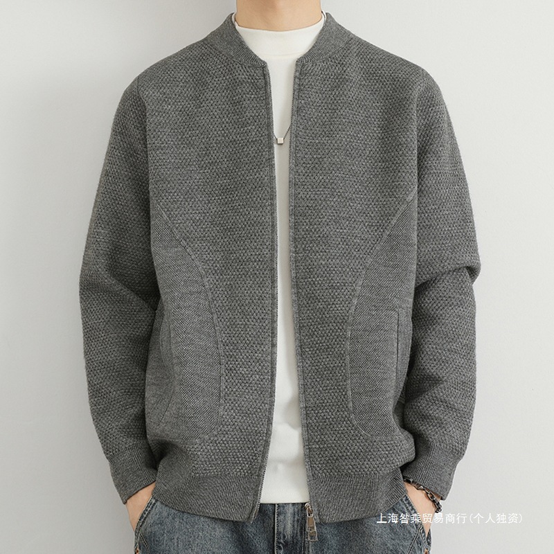 クロスボーダーのニットのカーディガンのコートの男性の春と秋の2024の新型のファスナーの毛糸のジャケットの男性のカジュアルな重いポンドのセーターの棒