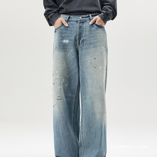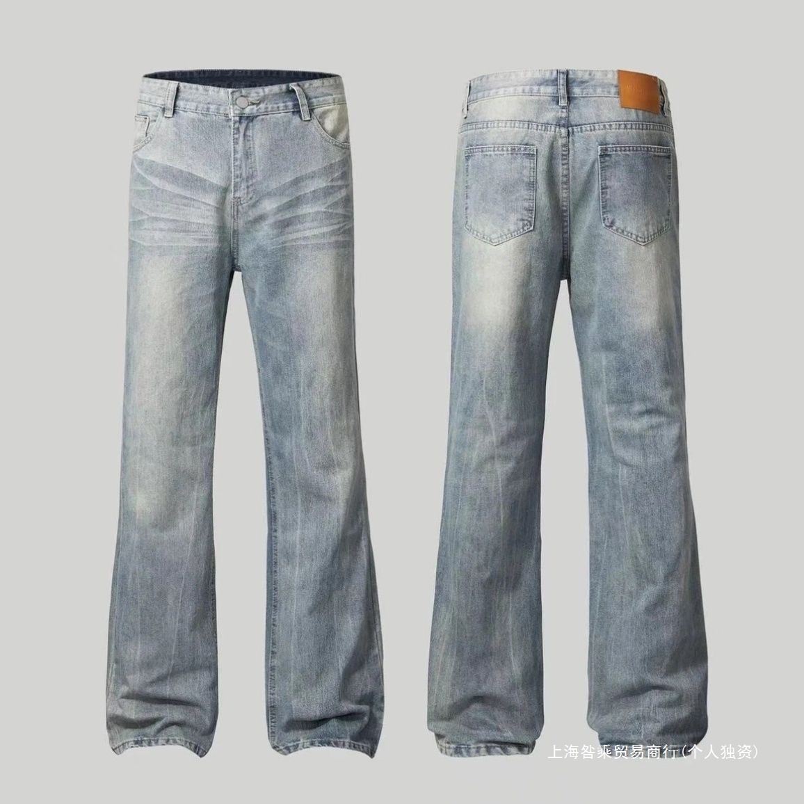国境を越えたアメリカのレトロな水洗いジーンズ男2024新型春秋感男性ストレートパンツ男