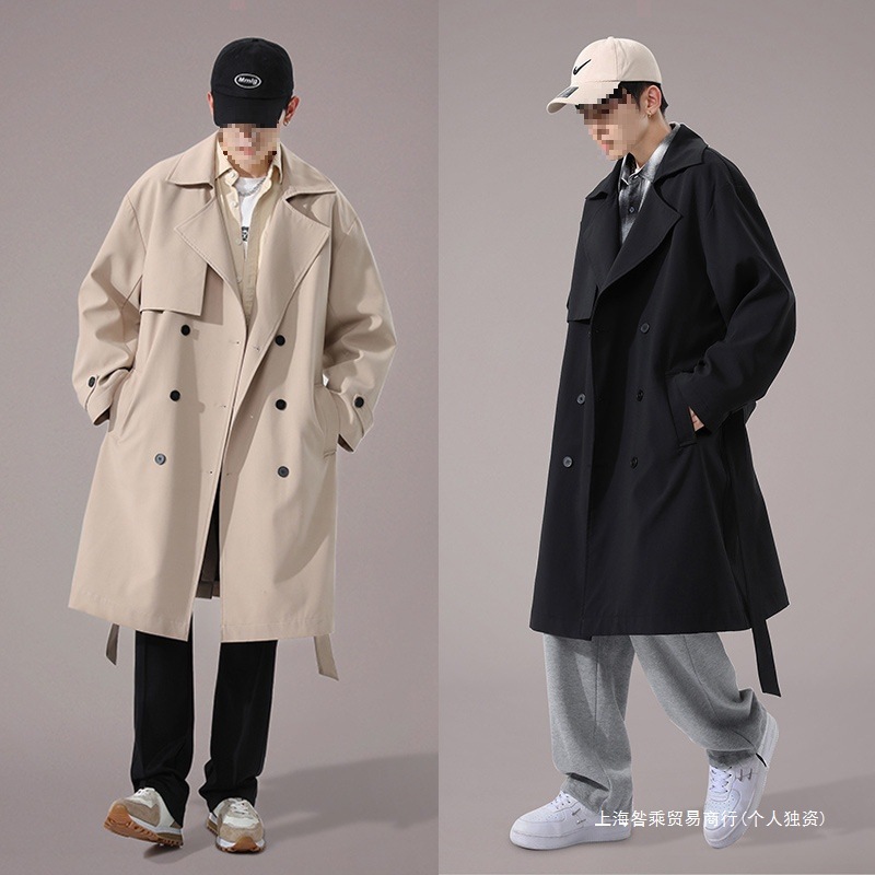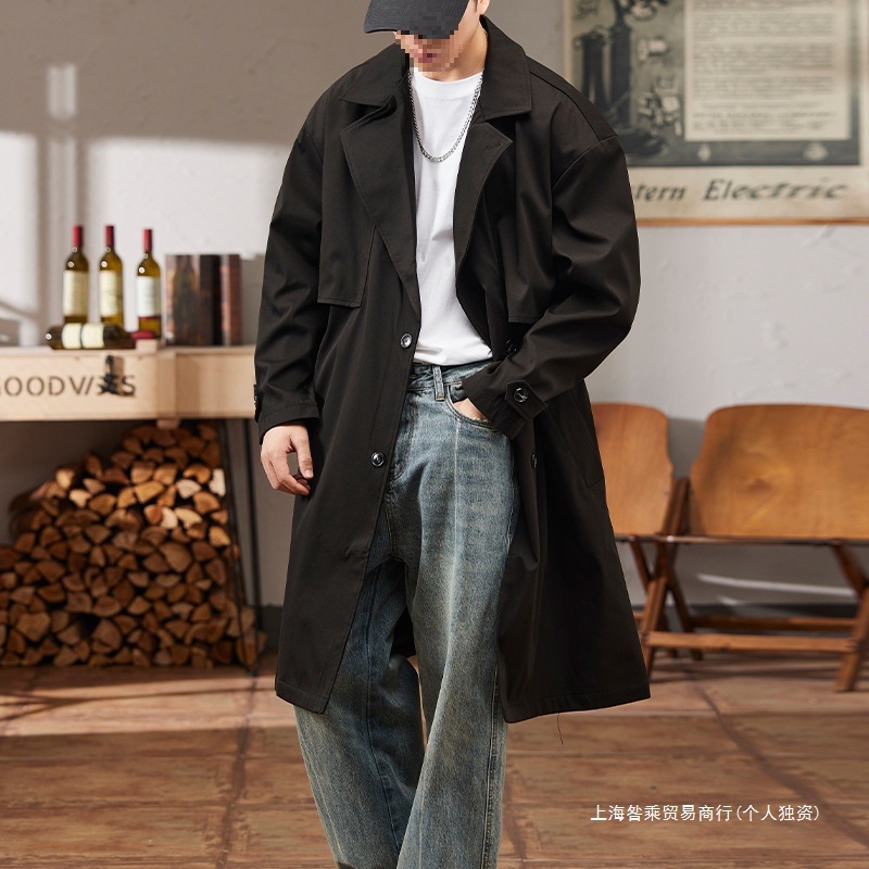 クロスボーダーの外国貿易の中の長いタイプの風衣のコートの男性の春と秋の2024の新型の韓国版の潮流は百合でゆったりしています。