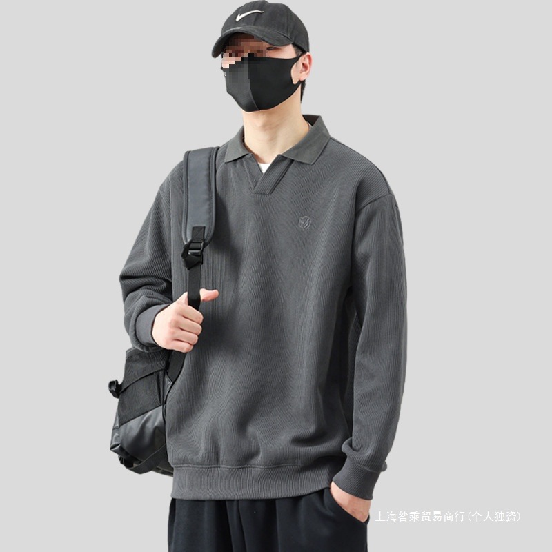 クロスボーダー2025新型ファッションメンズパーカー春秋モデル感のある質感のあるPOLO襟長袖春服上着男