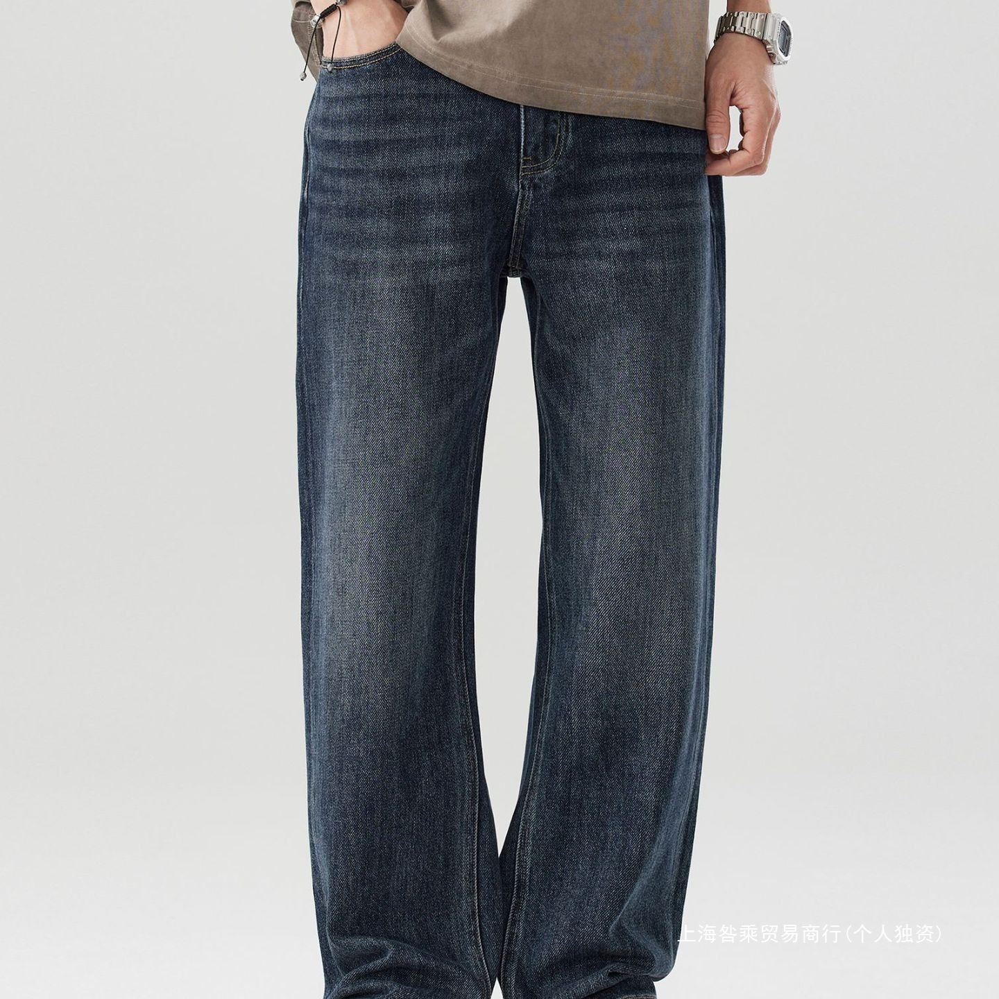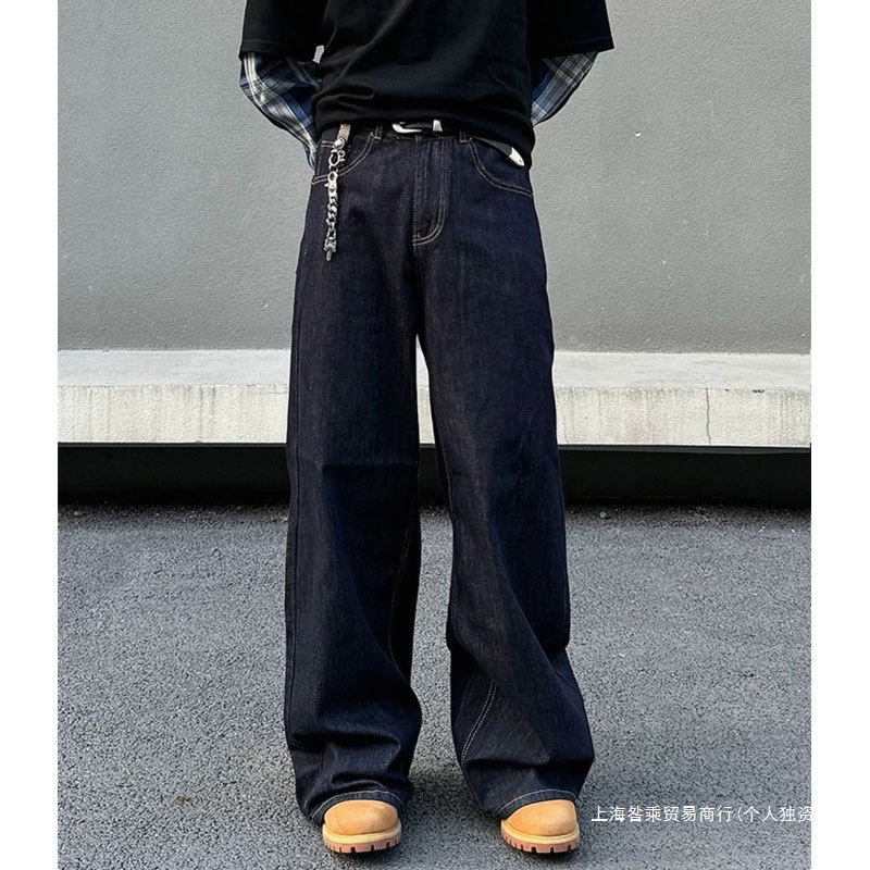 国境を越えたレトロな丹寧色のストレートジーンズ男2025年春のゆるい足の水洗いアメリカのカジュアルな組み合わせ