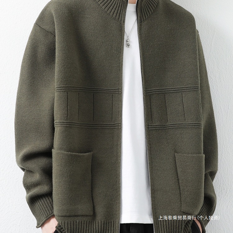 クロスボーダー立襟ニットカーディガンジャケット男性春秋潮牌ゆるいカジュアルジャケット男性感秋服