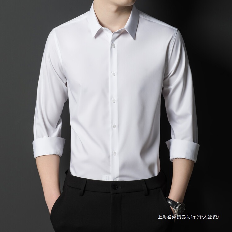 クロスボーダーのシャツの男性の長袖のビジネスの正装の2024春秋の新型のレジャーのしわに抵抗して熱い職業のシャツを免除します。