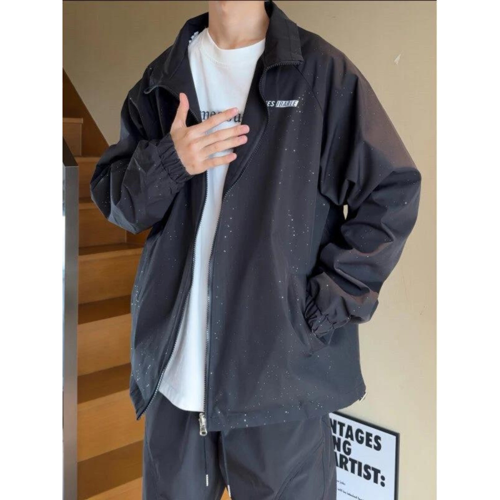 新しい厚手の作業服、香港スタイル、ファッショナブルで多用途、コントラストカラー、ルーズカジュアル、ラペルステッチ、コットンジャケット、ウインドブレーカー