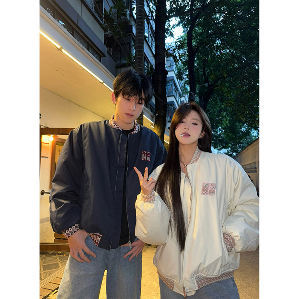 カップル綿服 2025 ジャカードジャケット男性と女性のアメリカン冬レトロ新デザイン野球ステッチルーズ