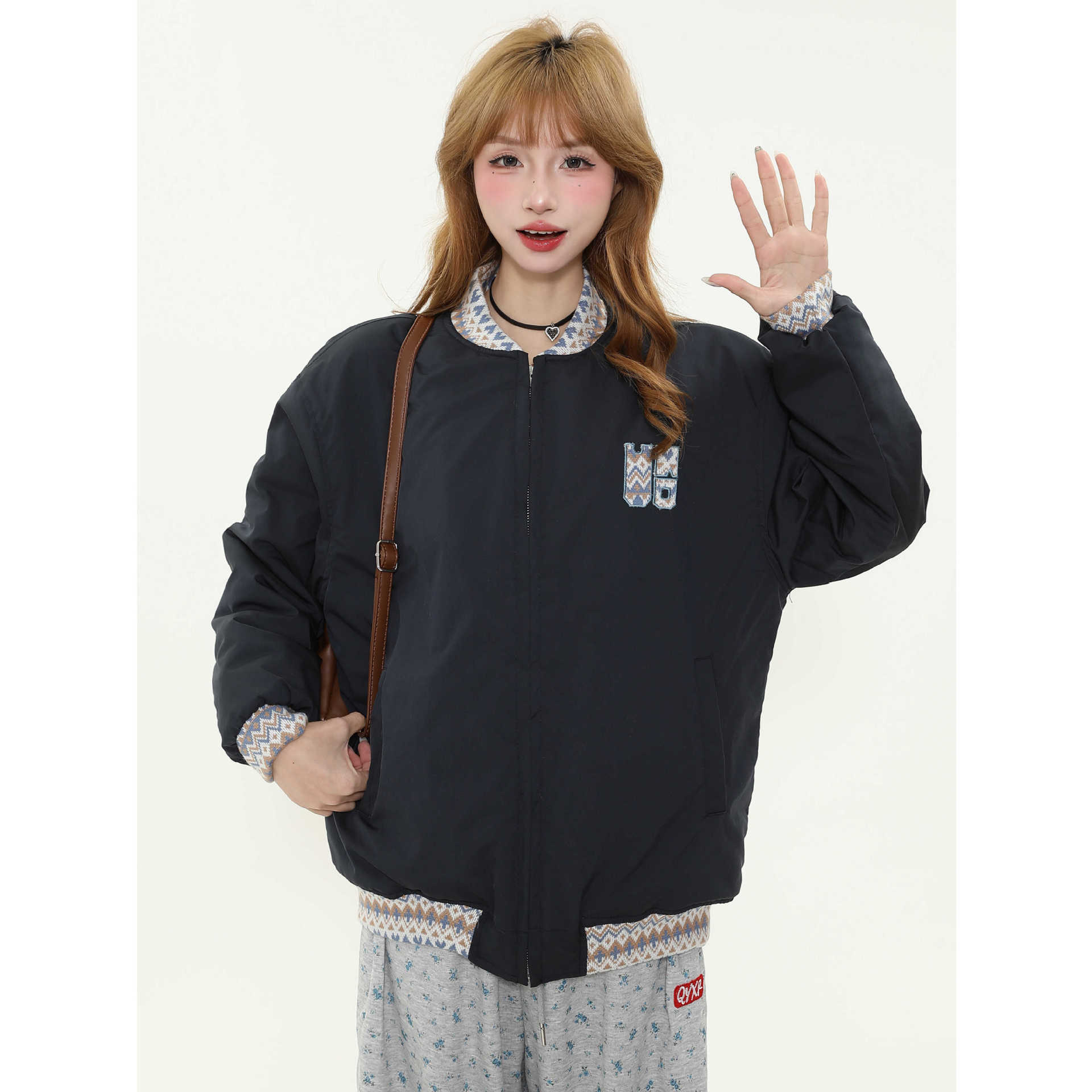 2025冬新作ゆったりカジュアル万能コントラストカラーコットンジャケットおしゃれ通勤暖かいダウンコットンジャケット