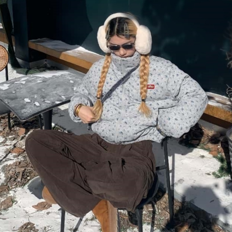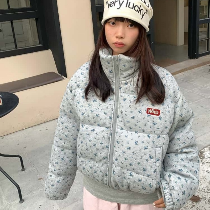 2025年冬新作 女性用小花柄スタンドカラーショート丈中綿ジャケット アメリカンスタイル 厚手保温コート パンコート ジャケット トレンド