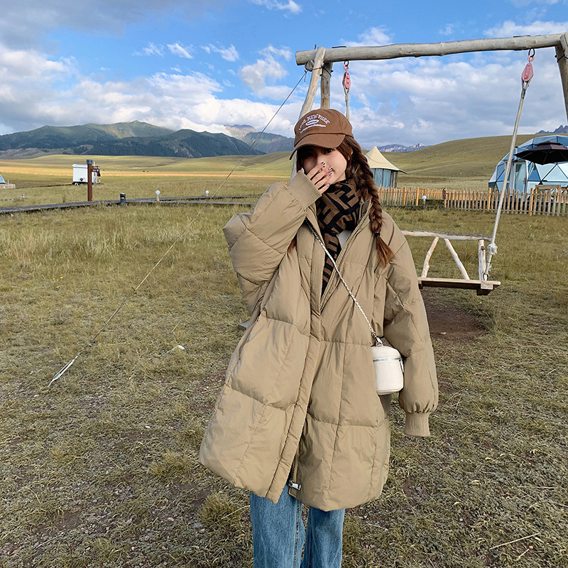 大きいサイズの羽毛の綿服の女性の冬の中で長いタイプのゆったりした綿服の韓国版は厚い保温の綿入れの潮流の小さい大衆の上着を厚くします。