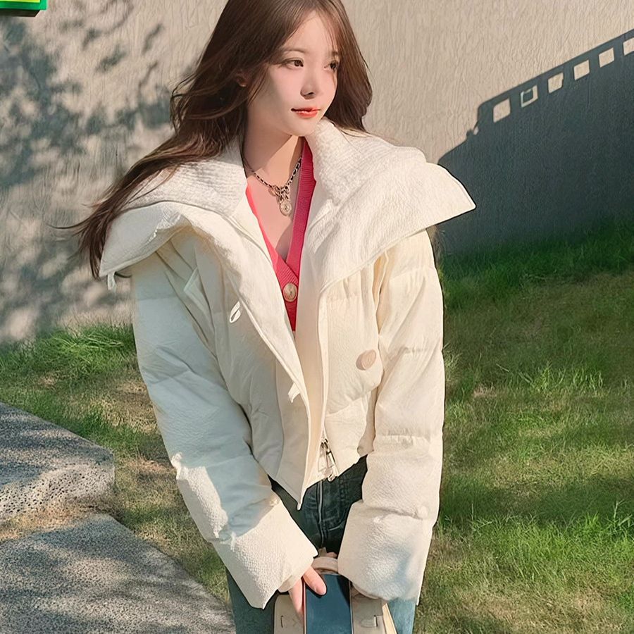 2025年の新型のゆったりとした厚手の綿入れの女性の冬の羽毛の綿服は韓国版の小さい香風の綿入れの上着のファッションを襟を返します。