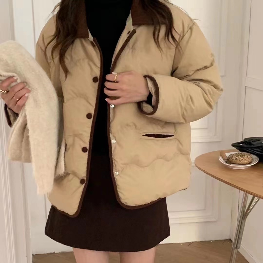 2025冬新作ゆったりカジュアル万能コントラストカラーコットンジャケットおしゃれ通勤暖かいダウンコットンジャケット