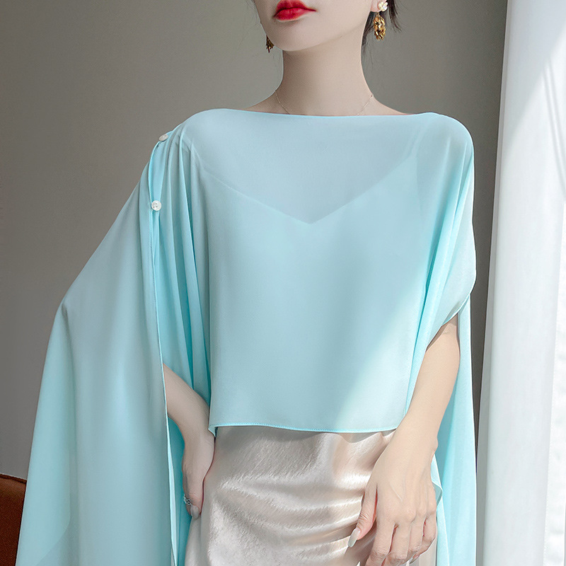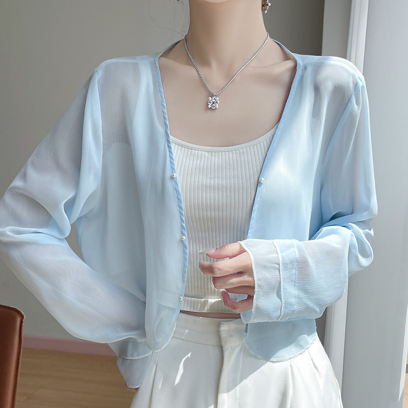 025 新しい夏のジョーゼットニットカーディガン無地ドレス気質多用途日焼け止めシャツショール女性のための